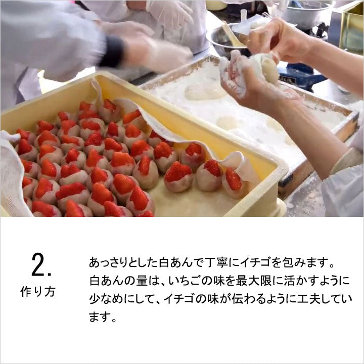 「マツコの知らない世界」のご当地愛され和菓子にも登場! 5Lサイズ以上の特大いちごをあっさりとした白餡と柔らかな羽二重餅で職人が一つずつ包みます。