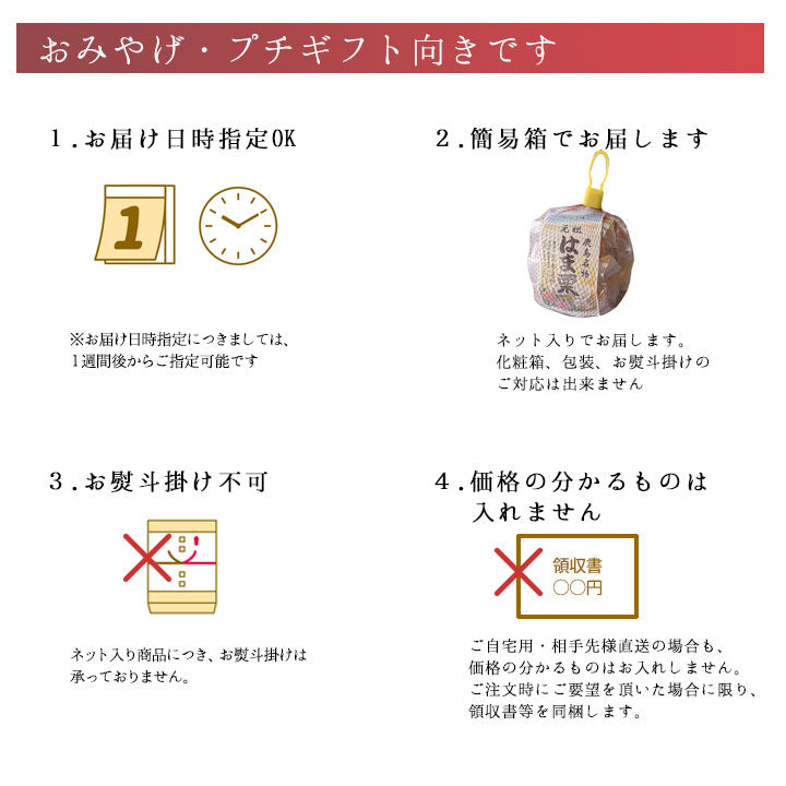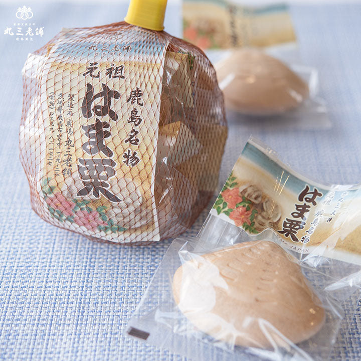 鹿島灘名産のハマグリを模したお菓子です。 茨城県笠間産の栗渋皮煮をたっぷりと使った和栗あんとやわらかな求肥をハマグリ形の最中皮でつつみました。