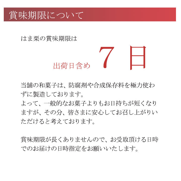 ■原材料名:砂糖(国内製造)、白餡、栗渋皮煮ペースト(茨城県産)、もち米(国産)、還元水飴、水飴、寒天/トレハロース、香料