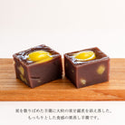 なめらかなこしあんの羊羹の中に刻み栗をたっぷり入れ、大粒栗甘露煮を添えて蒸し羊羹に仕上げます。もっちりとした食感が特徴です。