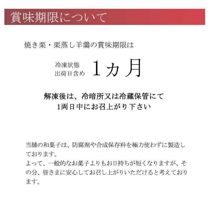 ■原材料名:小豆(北海道産)、砂糖、栗、小麦粉、水飴、もち米(国産)、葛、味醂、塩/トレハロース、クチナシ色素、(一部に小麦を含む)