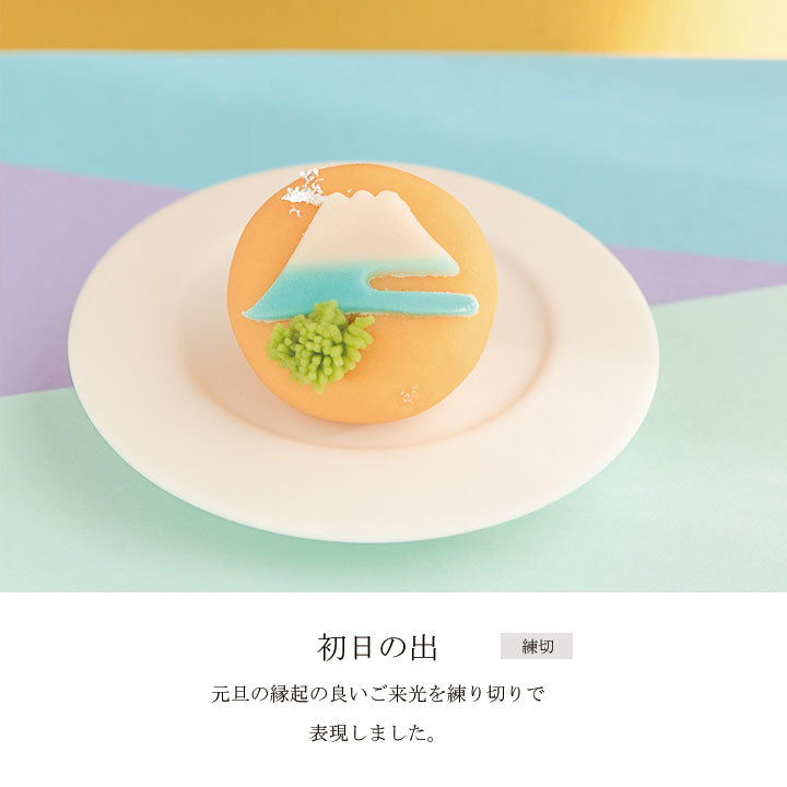 ・富士山(初日の出):白餡、砂糖、小豆、還元水飴、山芋、もち米/トレハロース、金箔、着色料(青1、黄4、黄5、赤102)、(一部に山芋を含む)